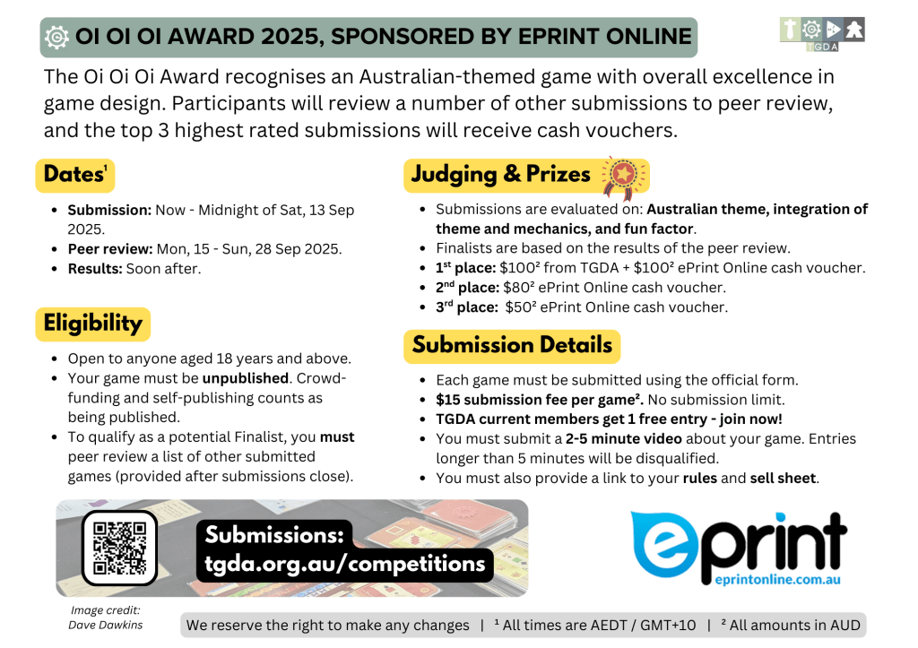 1st Place: $100 AUD cash from the TGDA + $100 AUD ePrint Online voucher